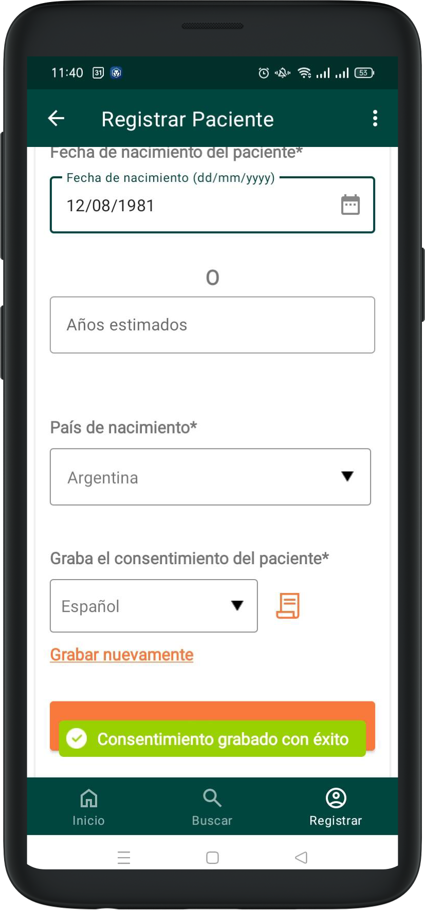 As you return to the Register form, the system will show an icon indicating that the consent recording is complete, along with a notification of success. If you’d like to repeat the recording process, you can click on Record again.