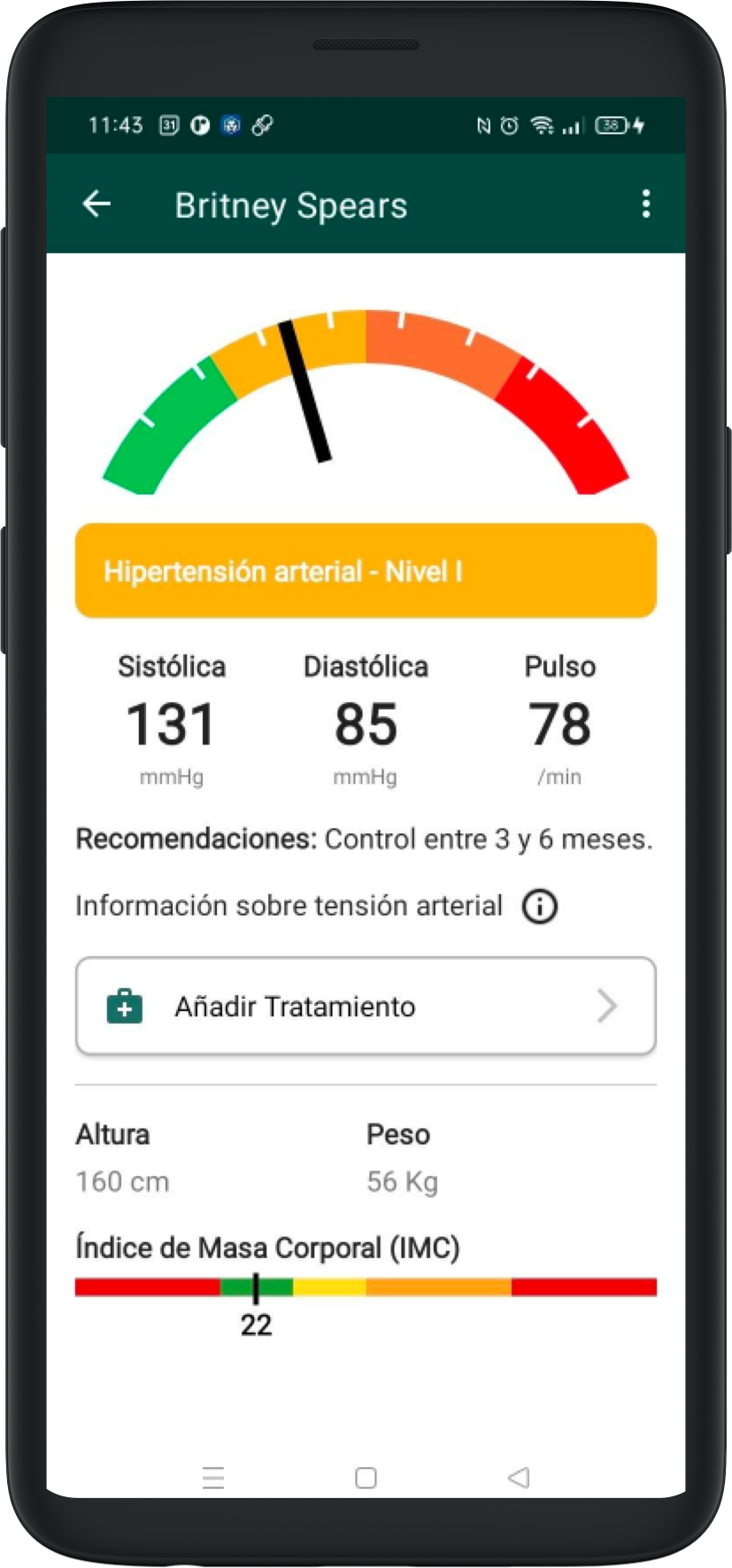 Depending on the average values of the visit, the level of arterial tension will be calculated.