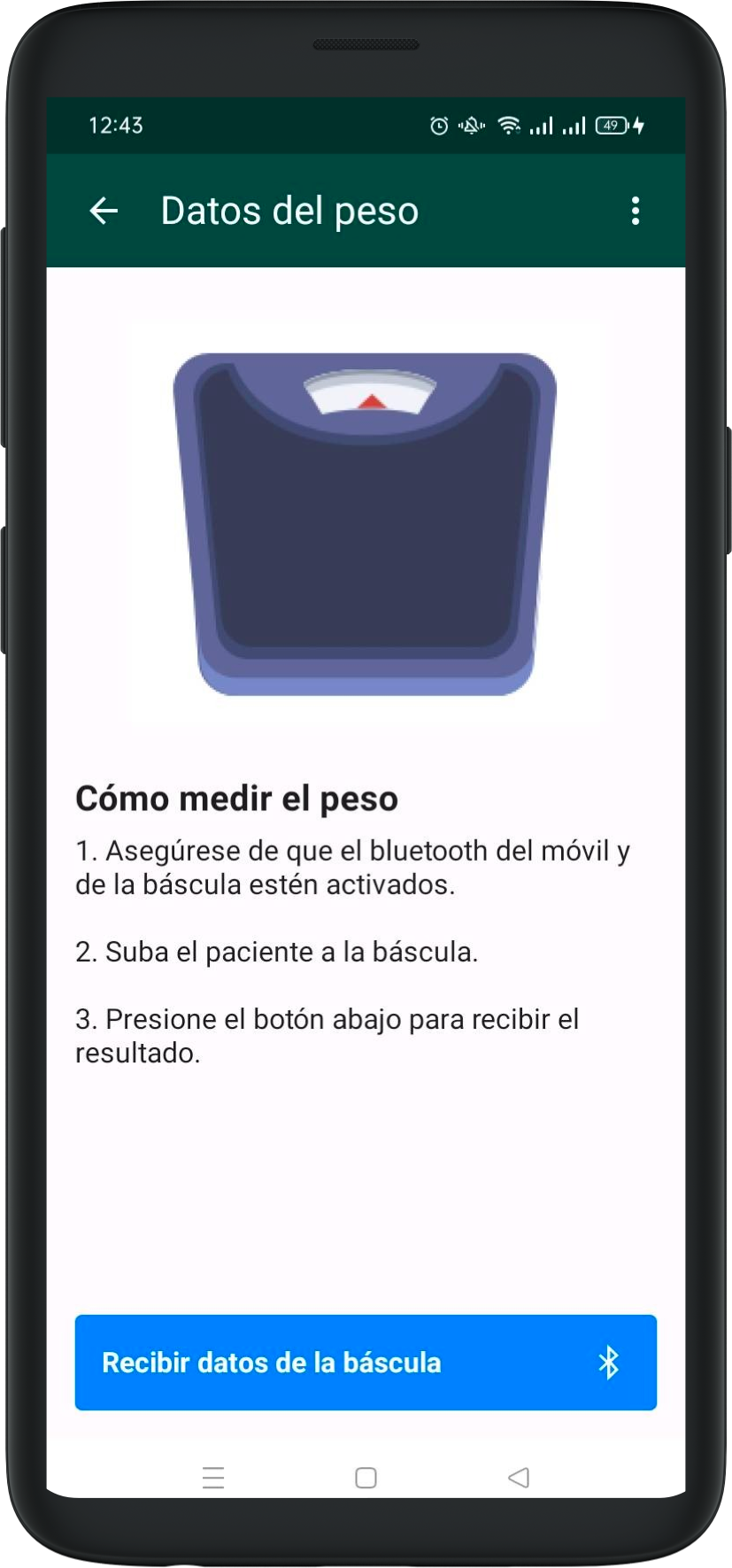To record the patient’s weight, make sure the scale shows a bluetooth symbol as you weigh them.