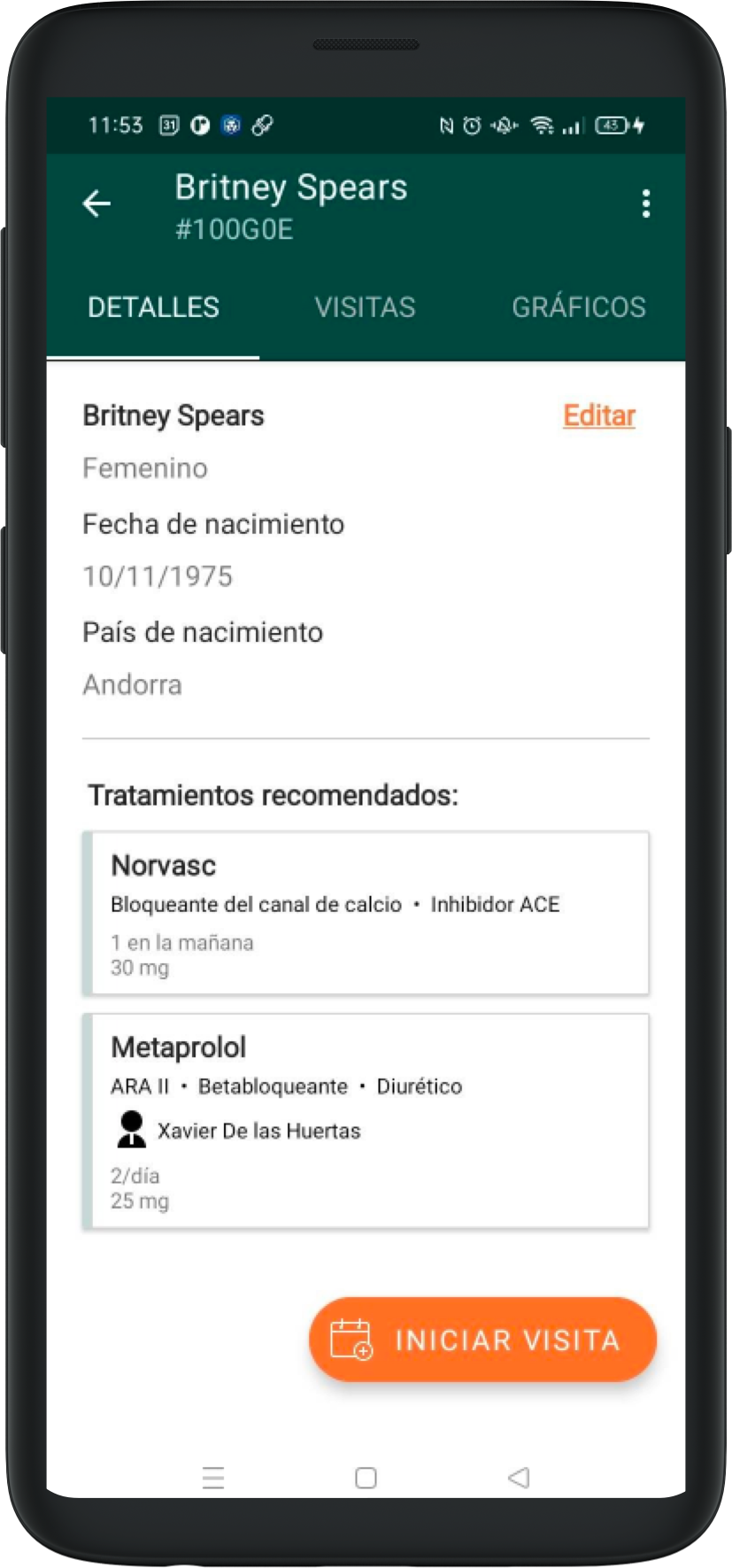 Si el paciente vuelve para otra visita en el futuro, podremos ver los tratamientos asociados al paciente antes de empezar una nueva visita.